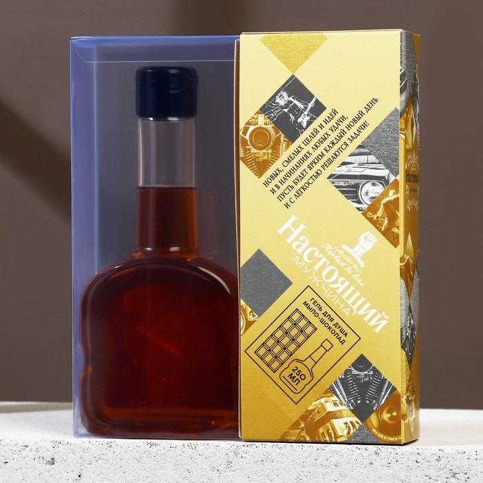Новогодний подарочный набор косметики «Настоящий мужчина», гель для душа во флаконе коньяка 250 мл и мыло для рук, Новый Год
