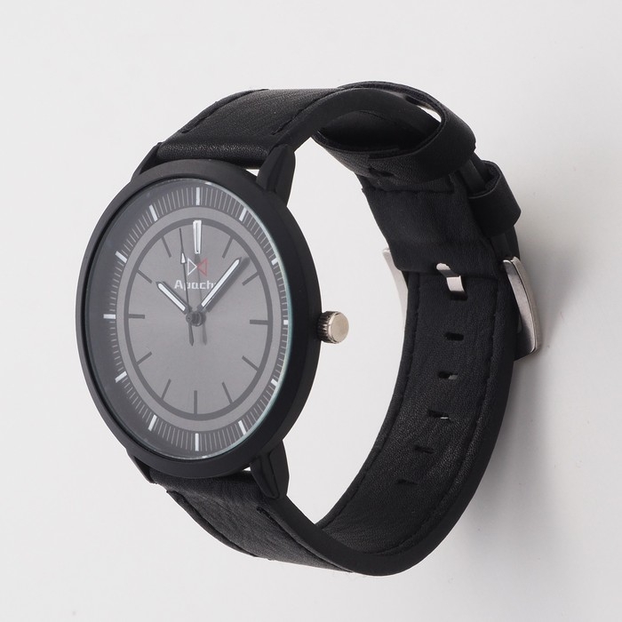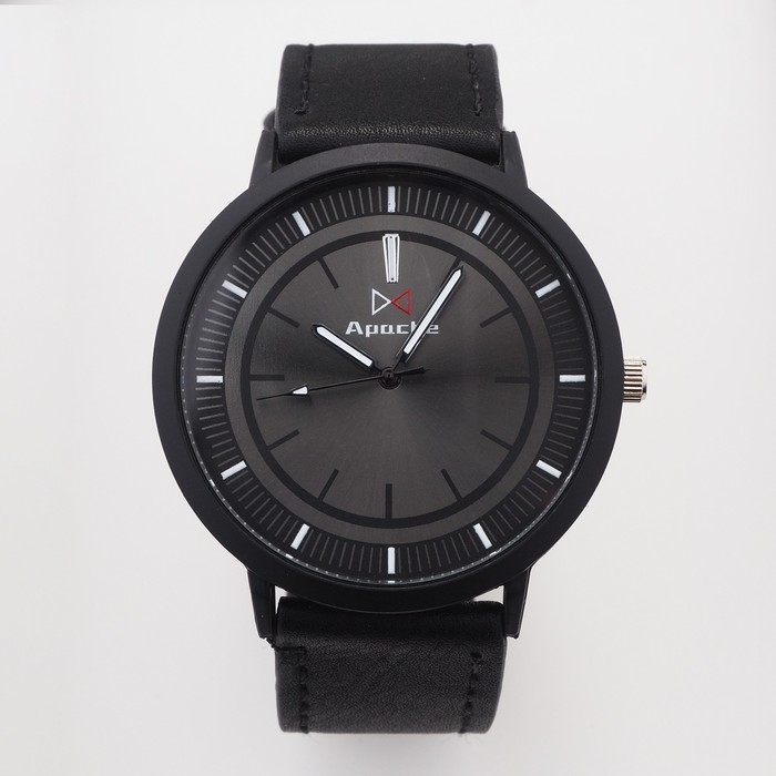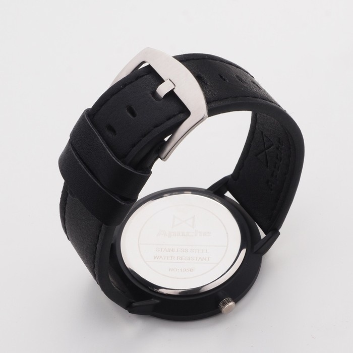 Часы наручные кварцевые мужские "Арес", d-4.5 см, черный ремешок