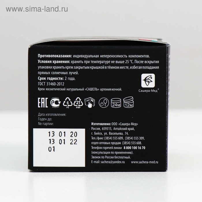 Крем Сашель артемия - ночной питательный крем против морщин и возрастных изменений кожи для всех типов кожи - мужчинам и женщинам в любом возрасте.