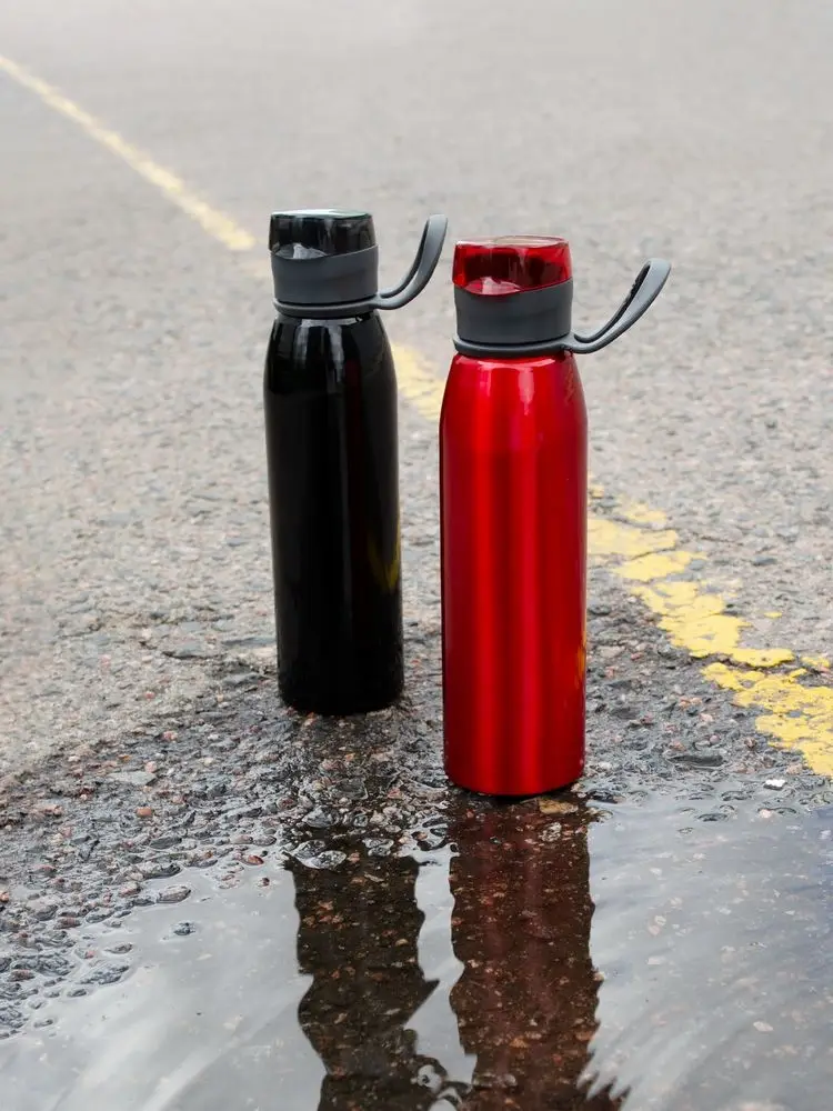 Легкая бутылка для спорта с откидной крышкой и силиконовой петлей для транспортировки.