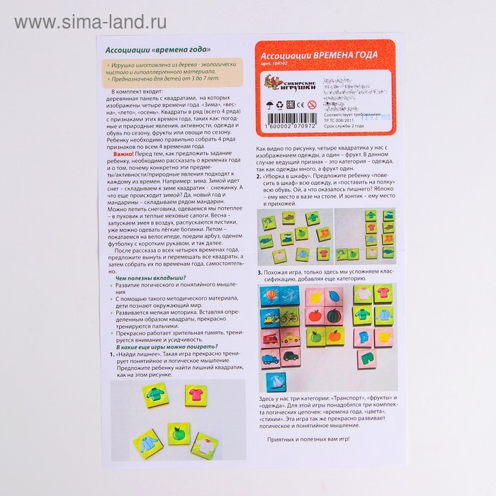 Игра «Логические цепочки. Времена года» изготовлена из дерева – экологически чистого и гипоаллергенного материала.
