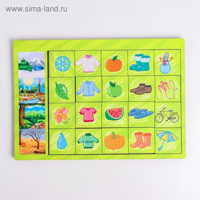 Цель игры:ребёнку необходимо правильно собрать 4 ряда признаков по всем 4 временам года.