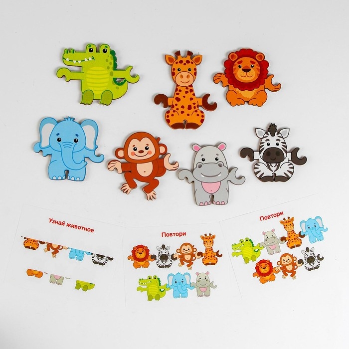 Эта уникальная игрушка-сказка помещается легко на ладошке ребёнка. В наборе «Зоопарк» представлены замечательные персонажи экзотических животных: зебра, жираф, слон, бегемот, лев и обезьянка. Каждого персонажа можно установить на деревянные подставочки и расставить на столе или надеть на пальчики ребёнка, чтобы устроить театральную импровизацию или сюжетную игру.