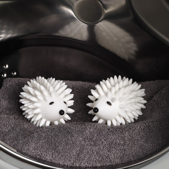 Шарики для стирки белья Доляна «Ёжики», 2 шт, цвет белый