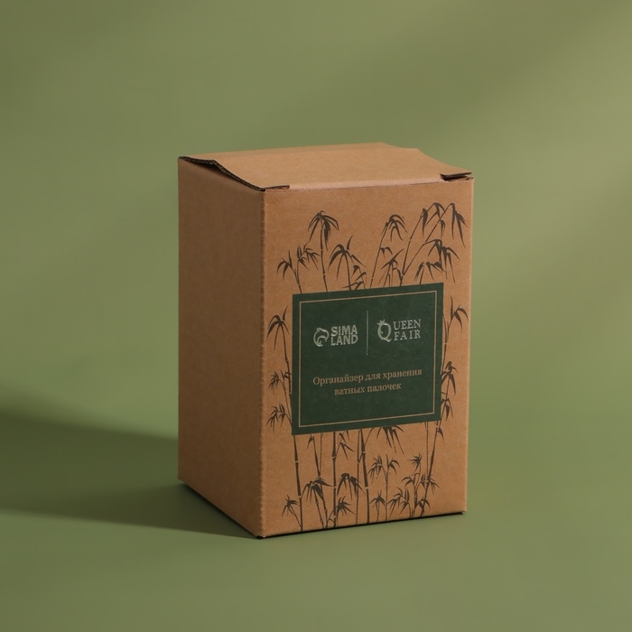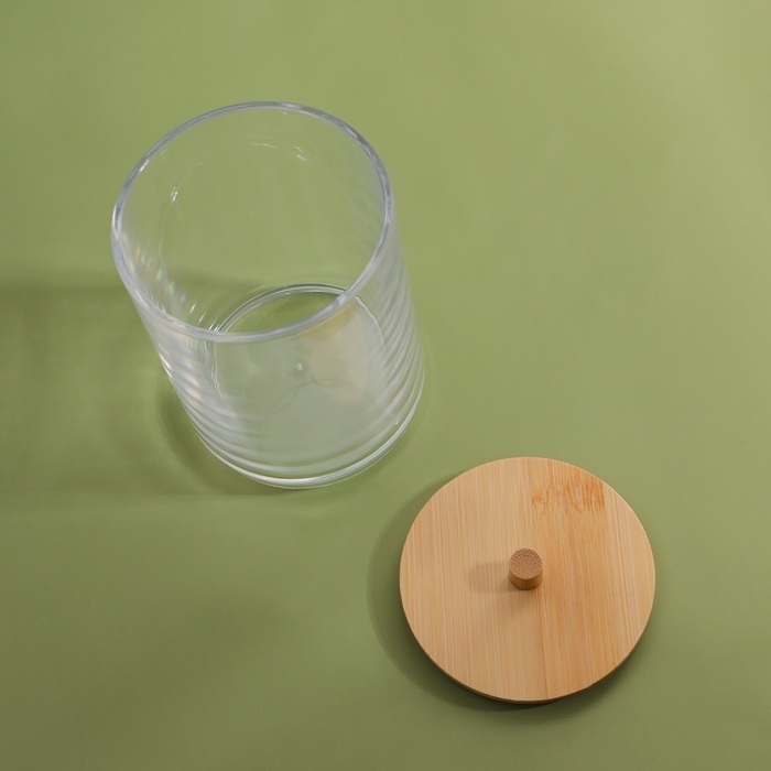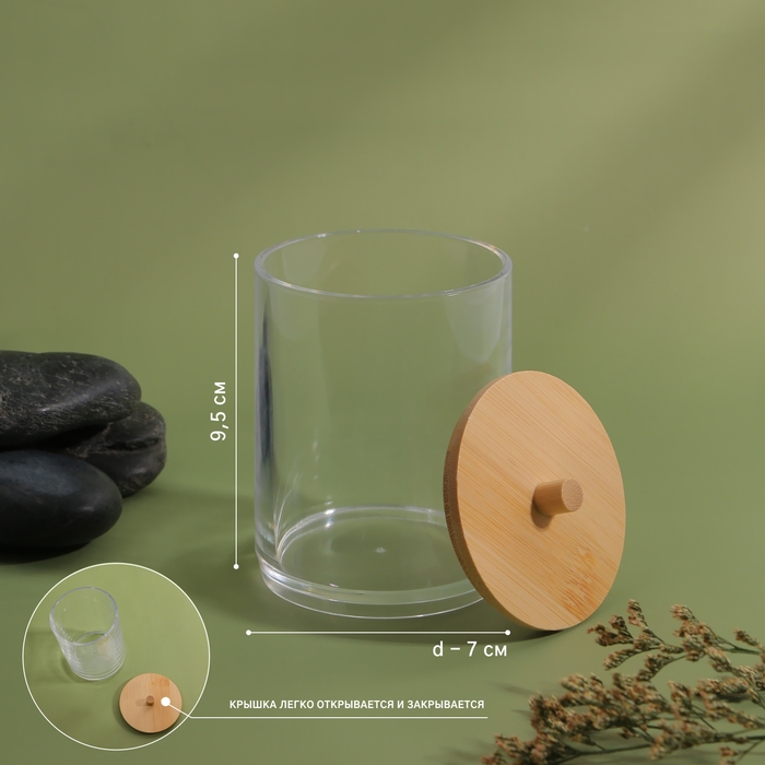 Органайзер для ватных палочек «BAMBOO», с крышкой, 7 × 7 × 9,5 см, в картонной коробке, цвет прозрачный/коричневый