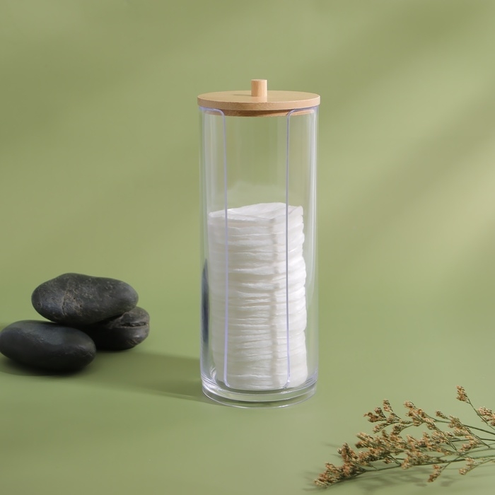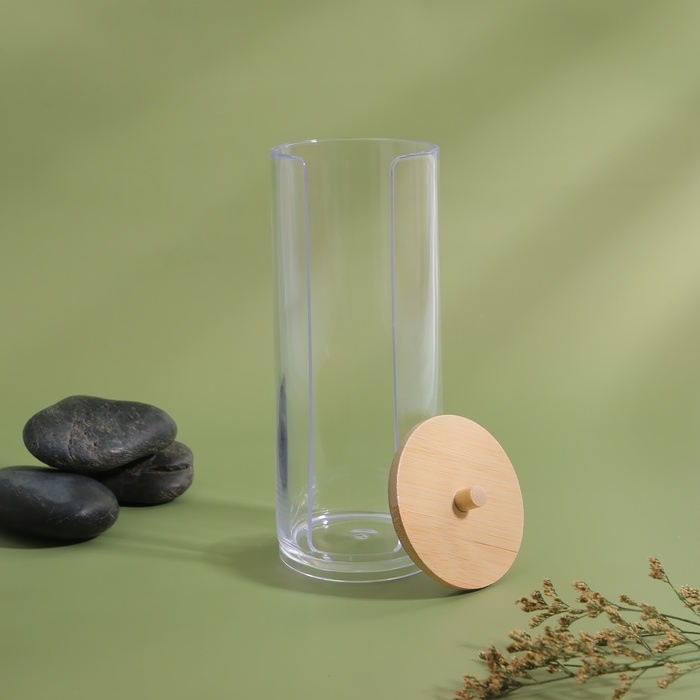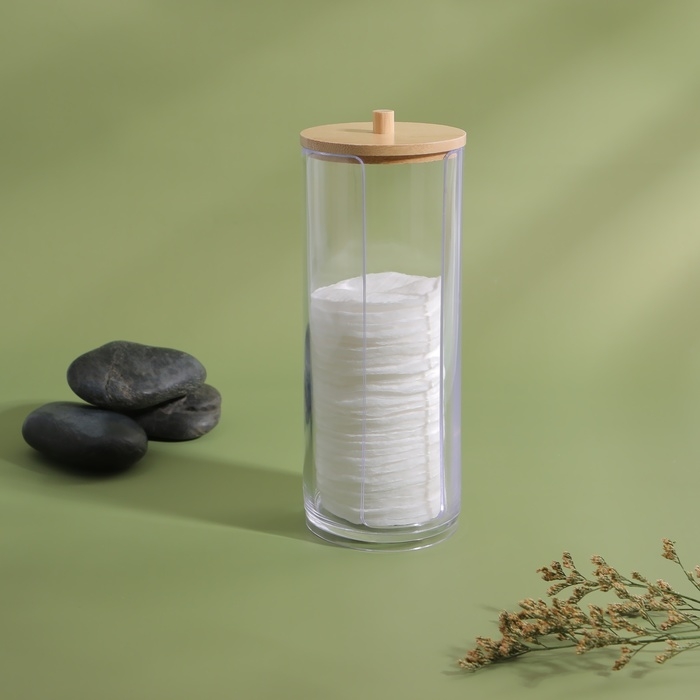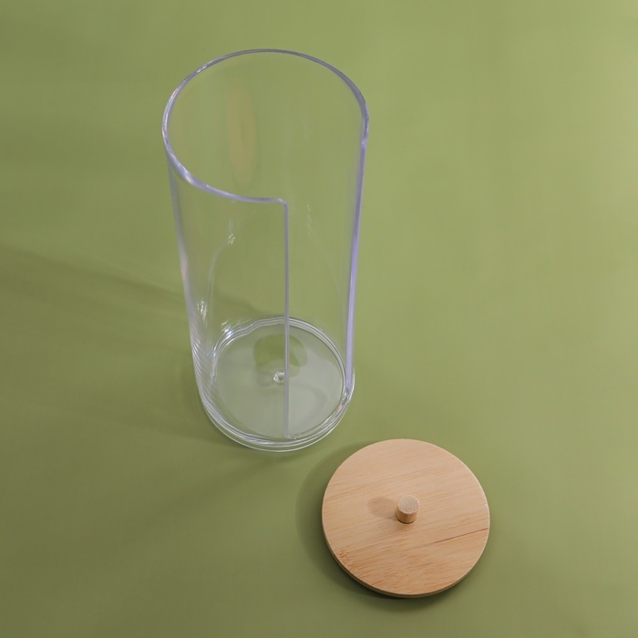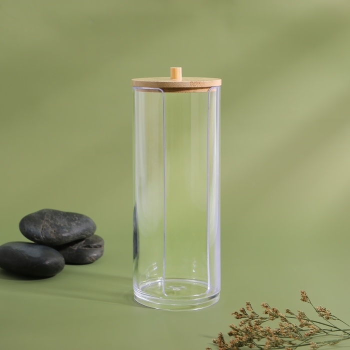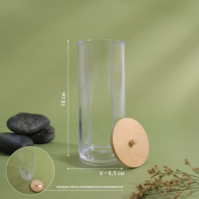 Органайзер для ватных дисков, с крышкой, d = 6,5 × 18 см, в картонной коробке, цвет прозрачный/коричневый