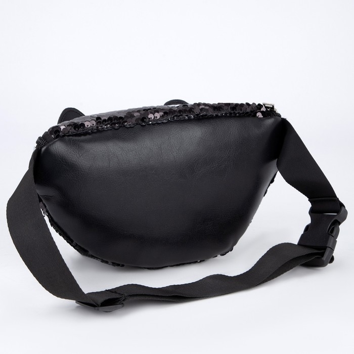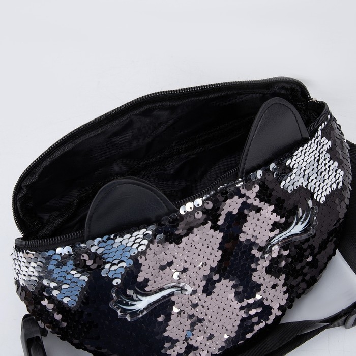 Сумка детская для девочки поясная Black cat с пайетками на молнии, цвет чёрный