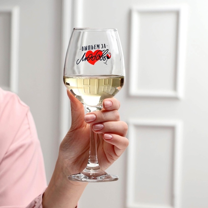 Бокал для вина «Выпьем за любовь», тип нанесения рисунка: деколь, 350 мл