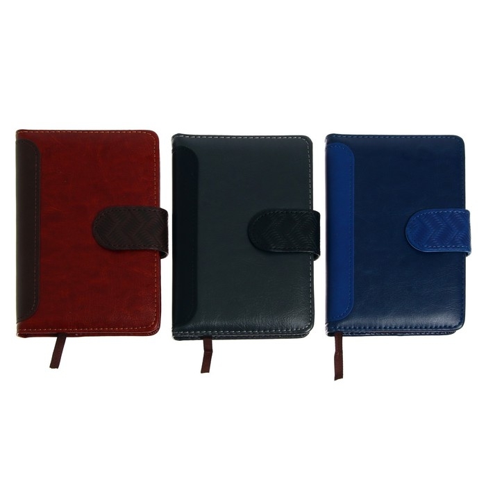 Ежедневник недатированный А6, 120 листов в клетку, тонированный срез, с хлястиком, обложка ПВХ, МИКС
