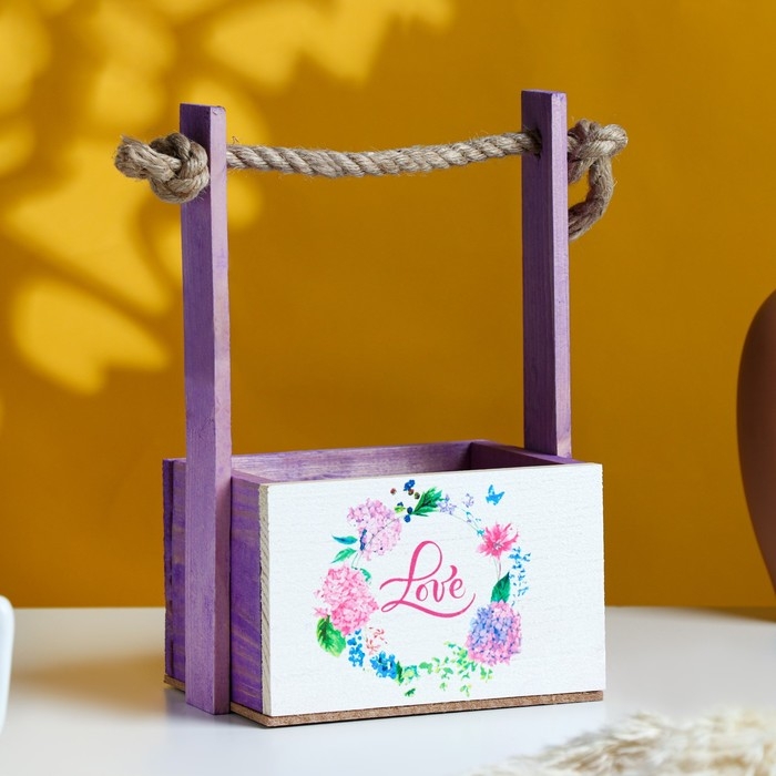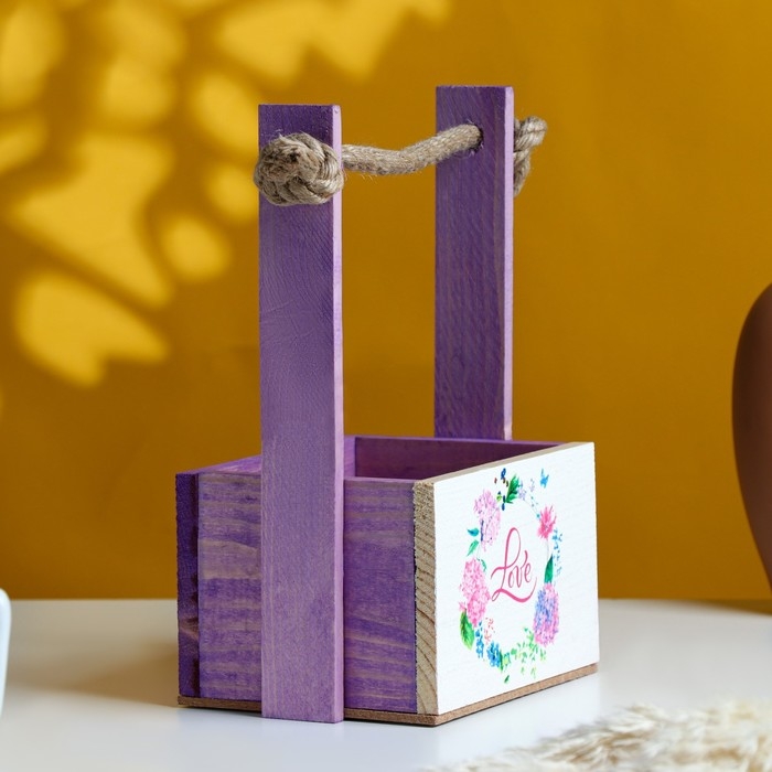 Кашпо деревянное, 15×12×8.5(25) см "Пауль и Любовь. Love в цветочках", с принтом