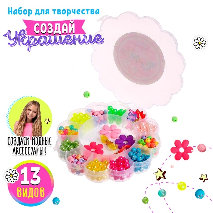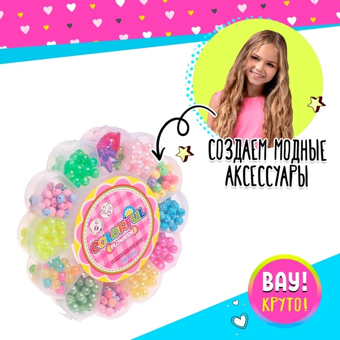 Набор для бисероплетения «Цветочек», в пластиковом контейнере, МИКС