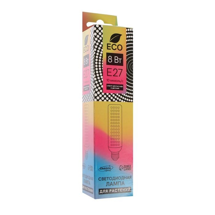 Фитолампа светодиодная Luazon, E27, 8 Вт, IP44, 220 В, биколорная