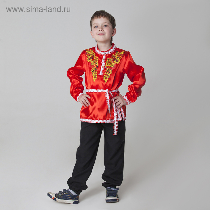 Карнавальная русская рубаха "Хохлома: цветы", атлас, цвет красный, р-р 36, рост 146 см