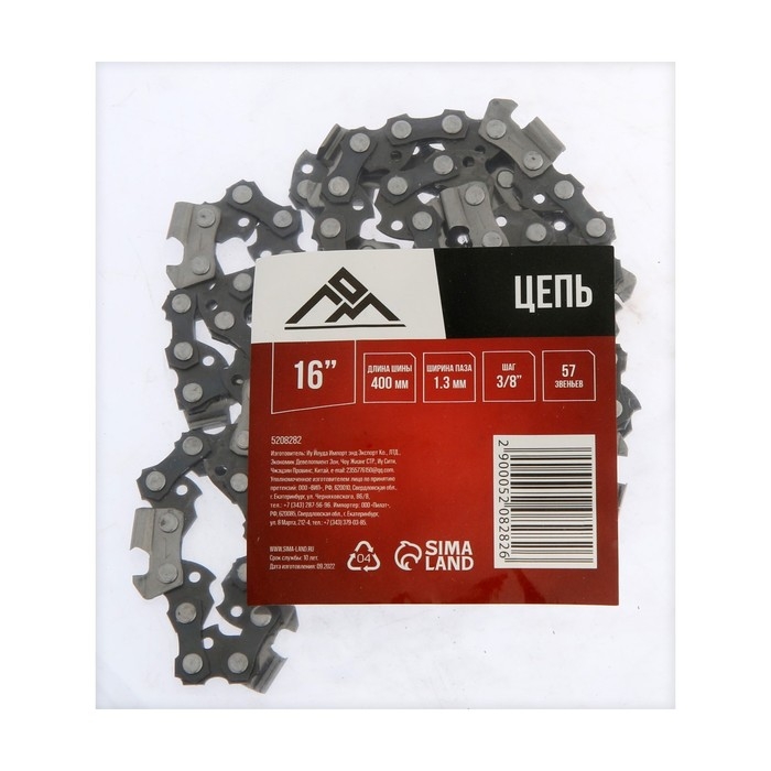 Цепь для бензопилы ЛОМ, 16", 400 мм, ширина паза 1.3 мм, шаг 3/8", 57 звеньев