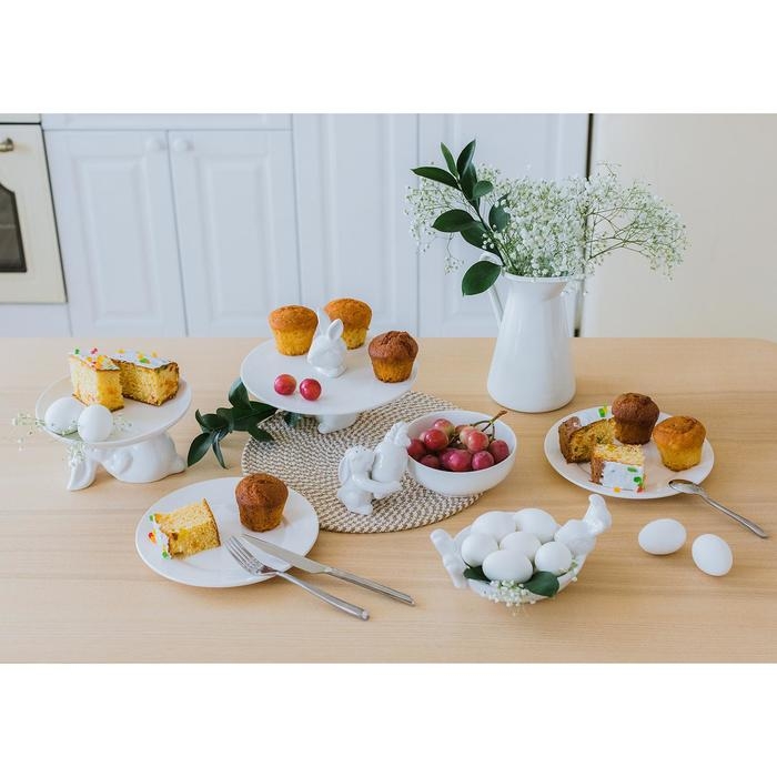 Стильная и необычная посуда – гордость любой хозяйки и отличный подарок. Наша сервировочная посуда с кроликами готова радовать вас и ваших гостей каждый день. Это посуда ручной работы из легкой и прочной керамики. Милый дизайн и белый цвет впишутся в любую кухню. Посуда займет мало места, и послужит прекрасным украшением стола.