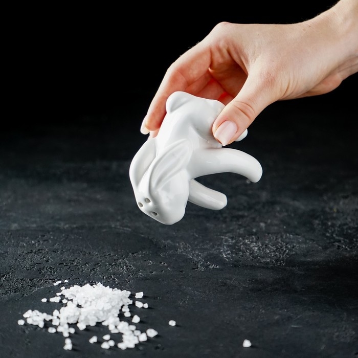 Набор для специй Доляна «Зайка», 2 предмета: солонка 50 мл, перечница 40 мл, цвет белый