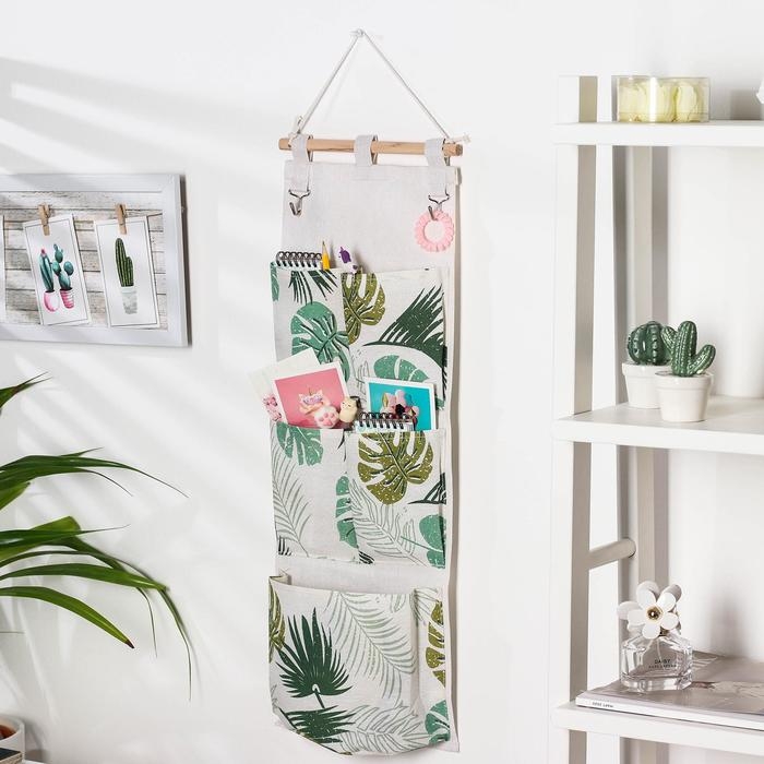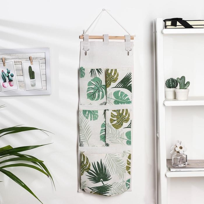 Органайзер подвесной с карманами Доляна «Тропиканка», 5 отделений, 65×23 см