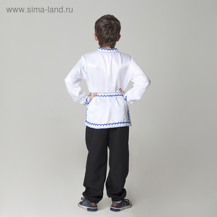 Карнавальная русская рубаха "Синие цветы", атлас, цвет белый, р-р 34, рост 140 см