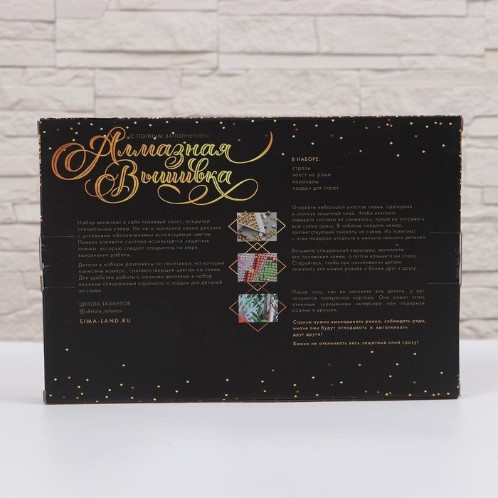 Тканевая основа имеет исключительное клеевое покрытие, которое надёжно удерживает кристаллики. С помощью пинцета вам нужно разложить их по нарисованной схеме с обозначением необходимых цветов, заполнив полотно. Отдельно вас порадует то, что все цвета схемы расположены рядом с рабочей областью холста. А это значит, что схема всегда будет под рукой!