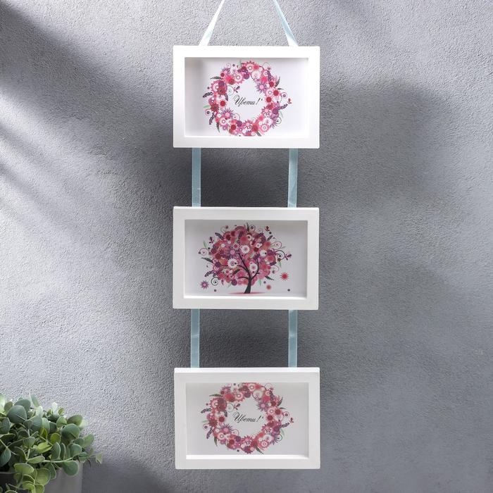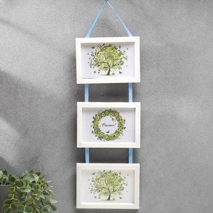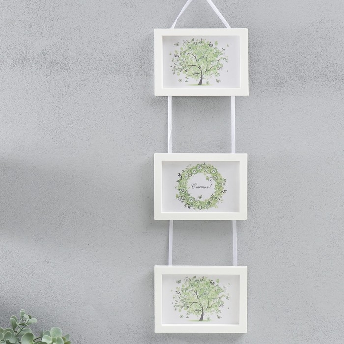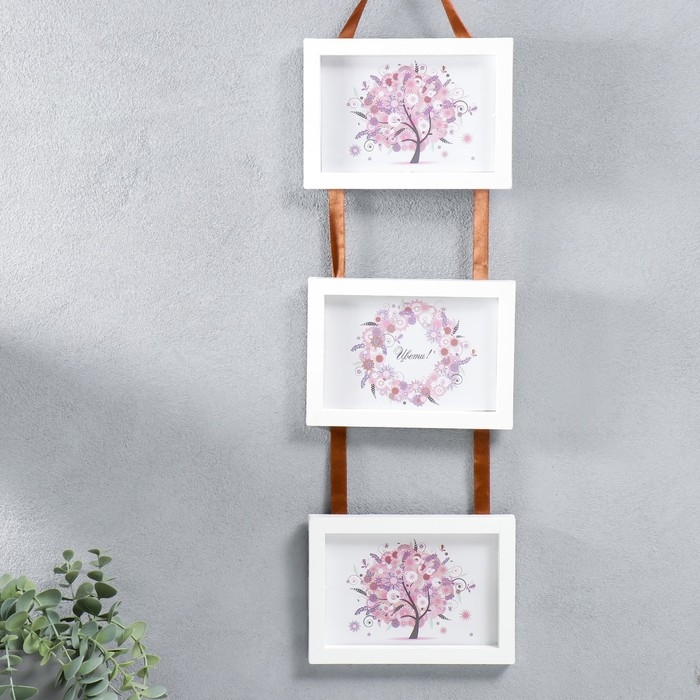 Фоторамка тройная на тесьме L-3 10х15 см белый (пластиковый экран)