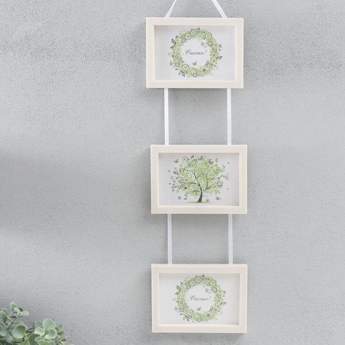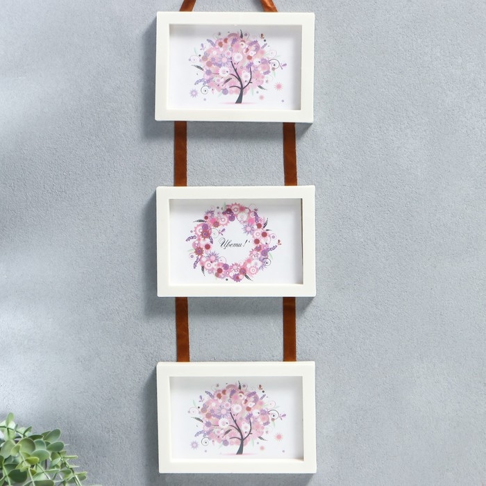 Фоторамка тройная на тесьме L-3 10х15 см перламутр (пластиковый экран)