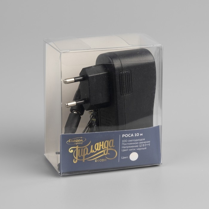 Гирлянда «Нить» 10 м роса, IP20, чёрная нить, 100 LED, свечение белое, 12 В