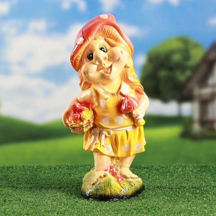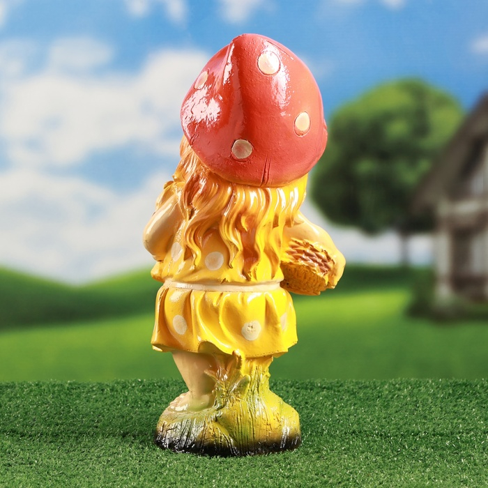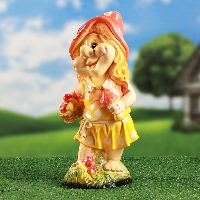Садовая фигура "Гномиха с мухоморами " 34х19см