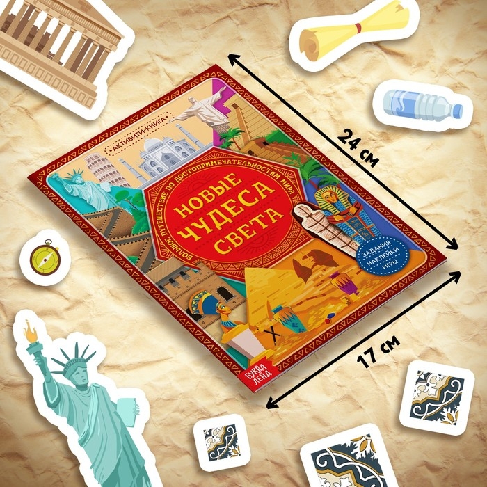 Познавательный и игровой набор «Новые чудеса света», 3 в 1, наклейки, книга и пазл, 88 элементов