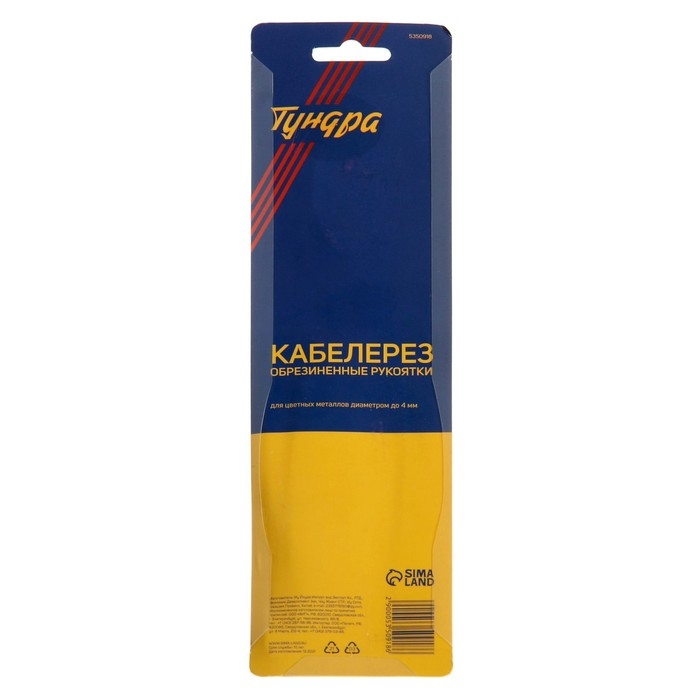 Кабелерез ТУНДРА, сталь 55, для цветных металлов до 4 мм, обрезиненные рукоятки, 200 мм