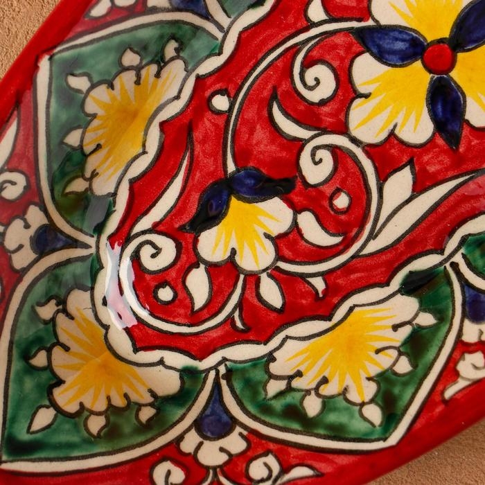 Селёдочница Риштанская Керамика "Цветы", 24 см, красная, микс