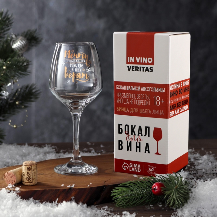 Бокал для вина «Мечты сбываются» 350 мл., деколь