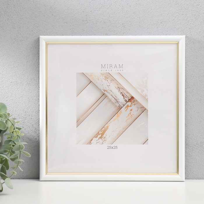 Фоторамка пластик "МИРАМ" 25х25 см, 636461-11, белый с золотом (пластиковый экран)