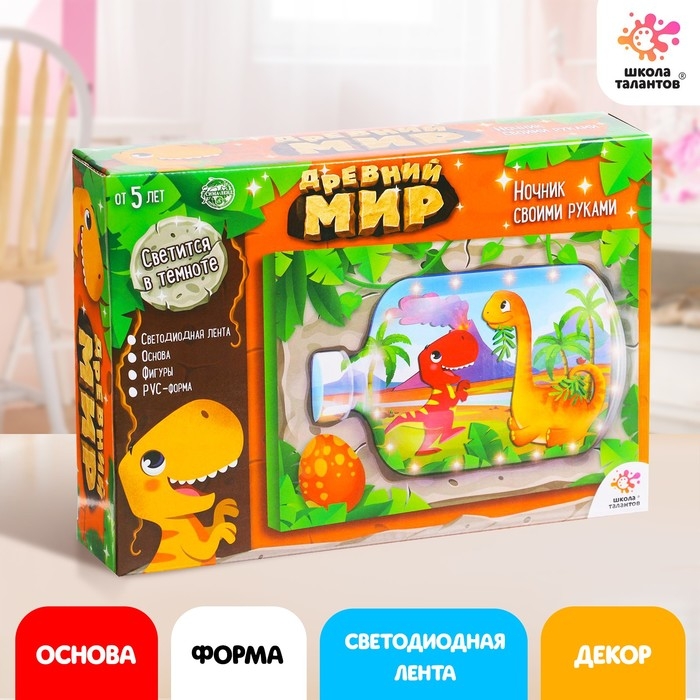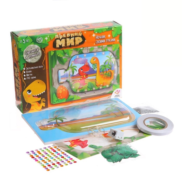 Набор для творчества «Создай ночник: динозаврик», с декором, 3+