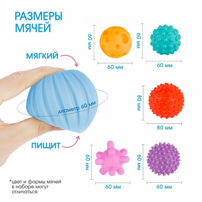 Мячики выполнены из приятного на ощупь материала, и малышам очень удобно держать их в руках.