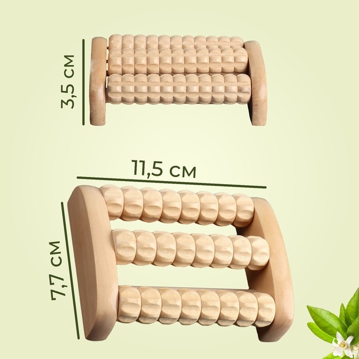 Массажёр для ног «Барабан», 3 ролика с шипами, деревянный, 11,5 × 7,7 × 3,5 см