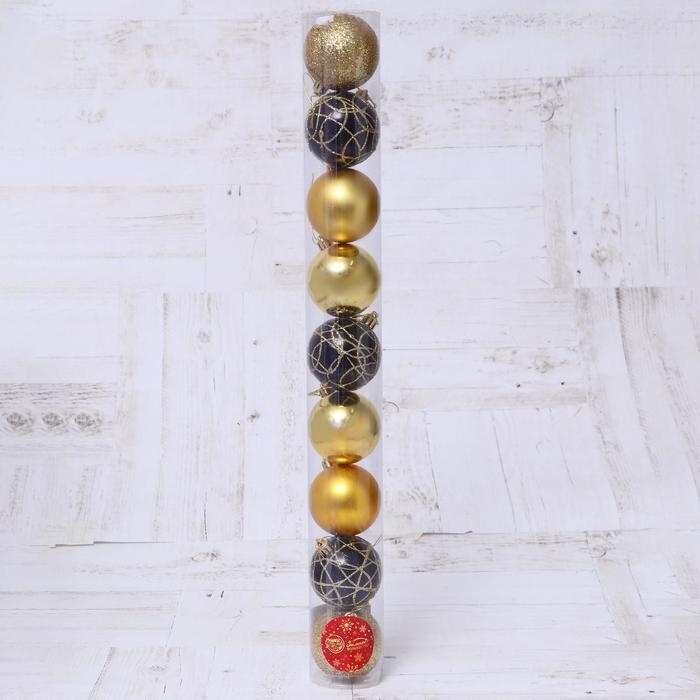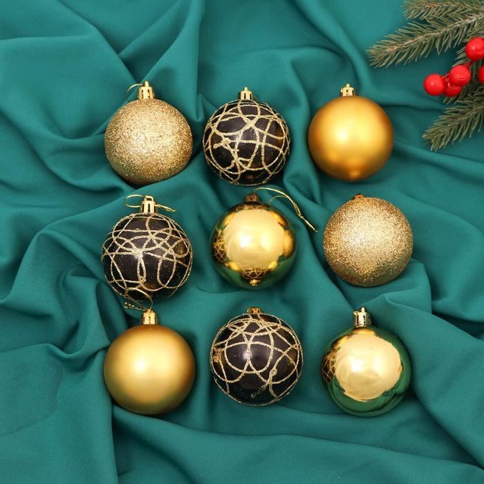 Набор шаров пластик d-6 см, 9 шт "Авива" золото