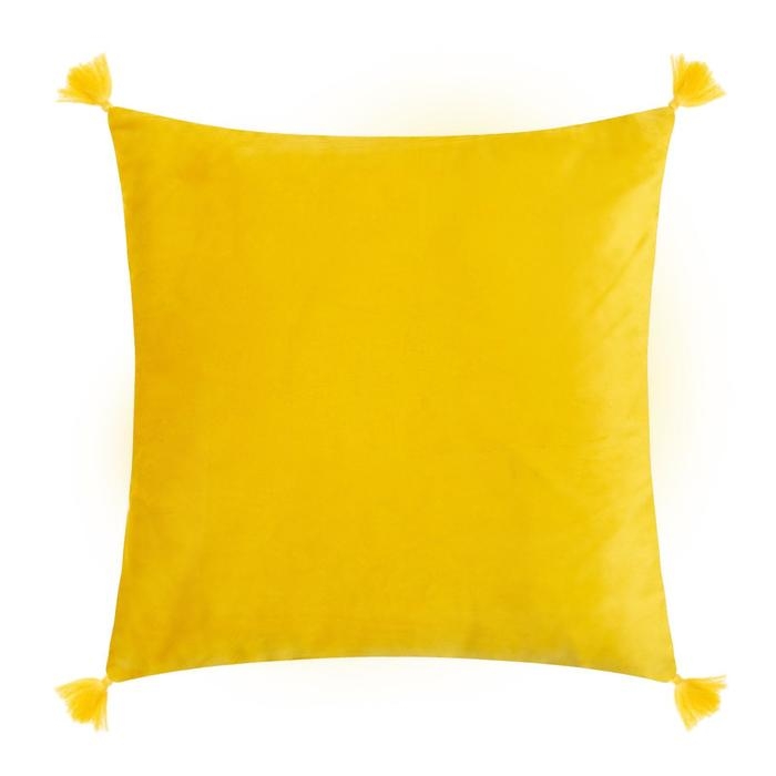 Наволочка декоративная с кисточками Этель цвет жёлтый, 45х45 см, полиэстер, велюр