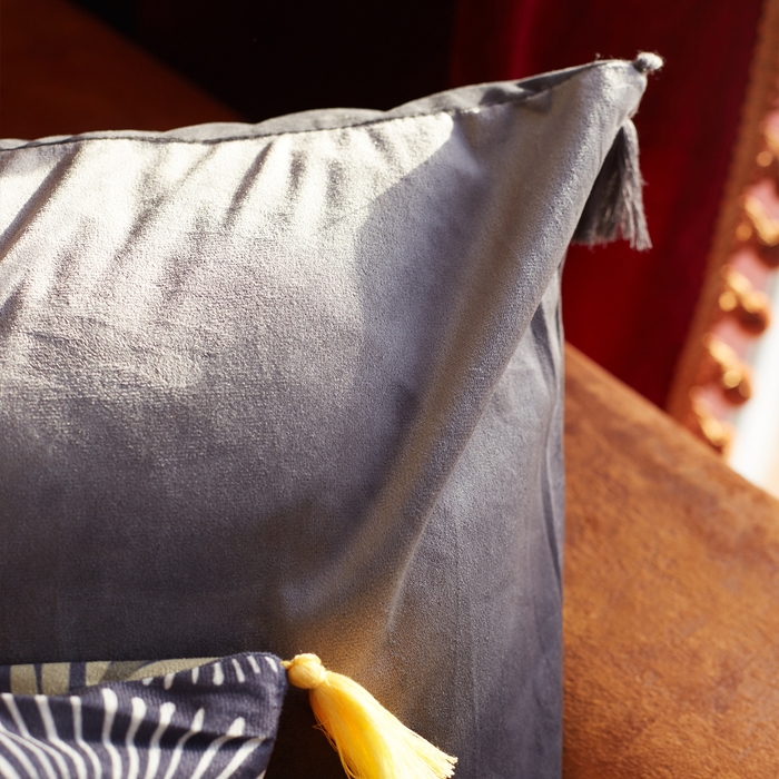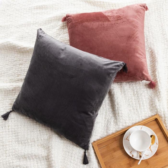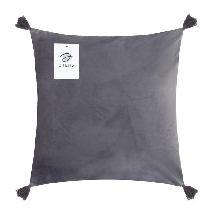 Наволочка декоративная с кисточками Этель цвет серый, 45х45 см, полиэстер, велюр