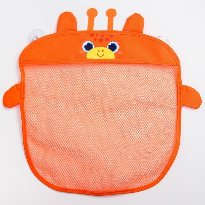 Сетка для игрушек поможет хранить детские принадлежности и игрушки в чистоте и свободном доступе. Изделие выполнено из прочного материала и крепится к стене с помощью двух присосок.