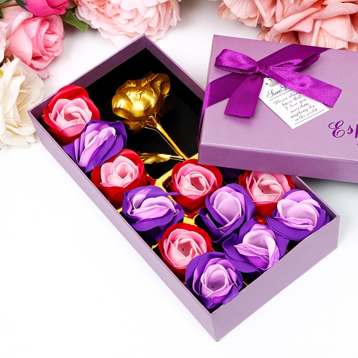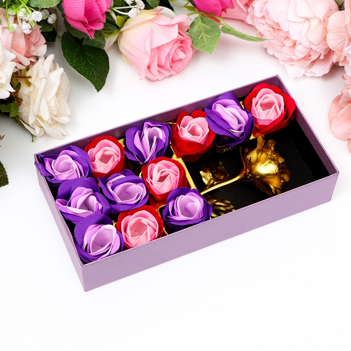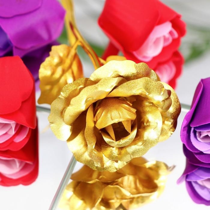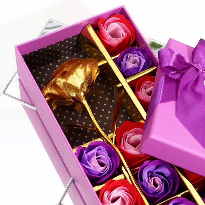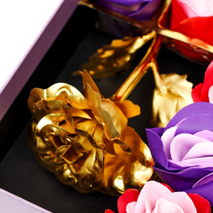 Мыльные розочки цветных оттенков и золотая роза, набор