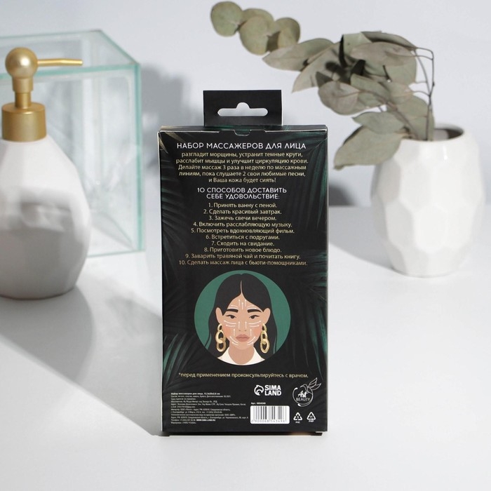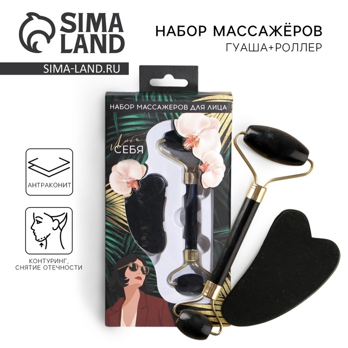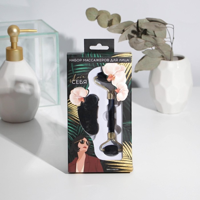 Массажер для лица, гуаша набор «Люби себя» 10,5 х 19 см, антраконит