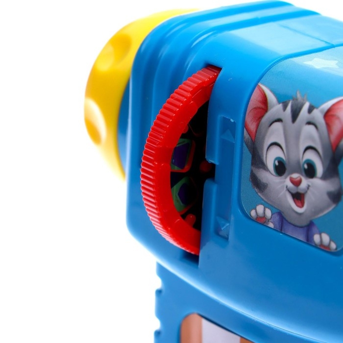 Проектор воспроизводит песенки-потешки. А встроенный фонарик позволяет использовать игрушку как ночник.
