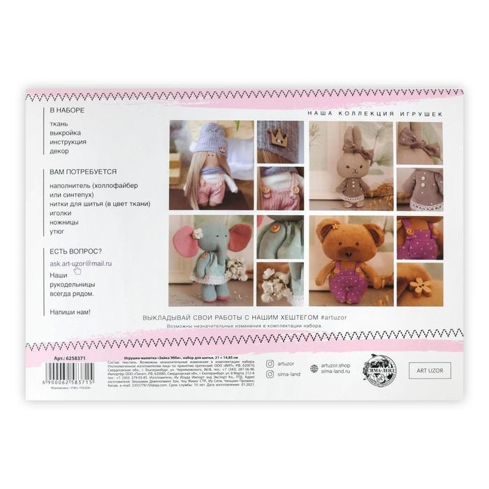 Набор для шитья игрушки-малютки «Зайка Эбби», 23 см