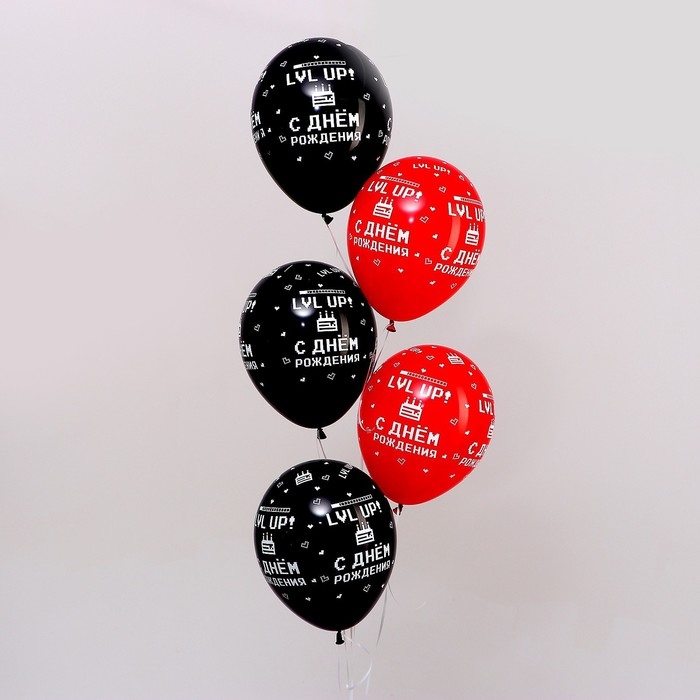 Воздушный шар латексный 12" «С Днём рождения Геймеру 2», пастель, цвет черный, красный, 50 шт.