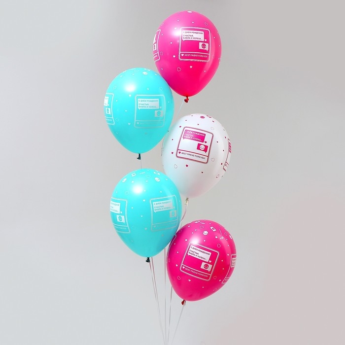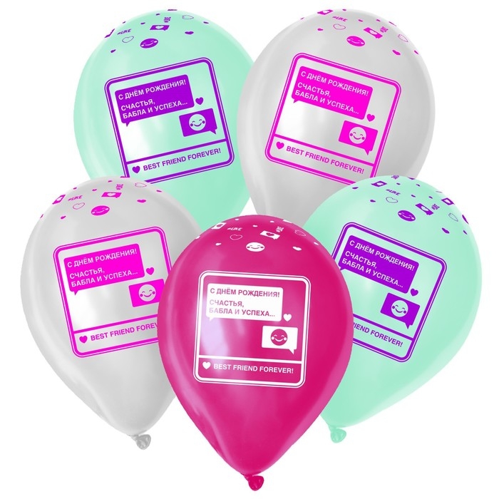 Воздушный шар латексный 12" «С Днём Рождения. СМС», пастель, 50 шт., МИКС