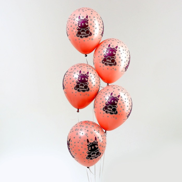 Воздушный шар латексный 12" «Ура, я родилась», зайка, пастель, 50 шт.