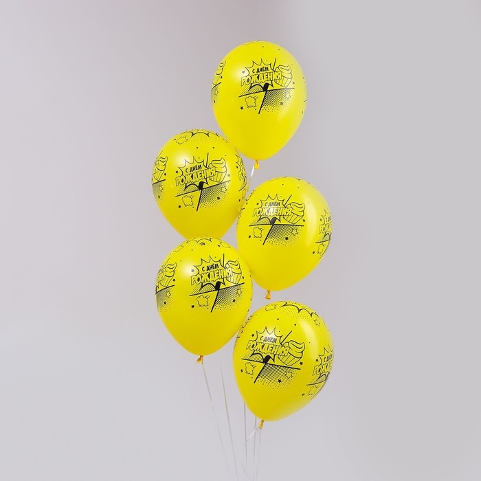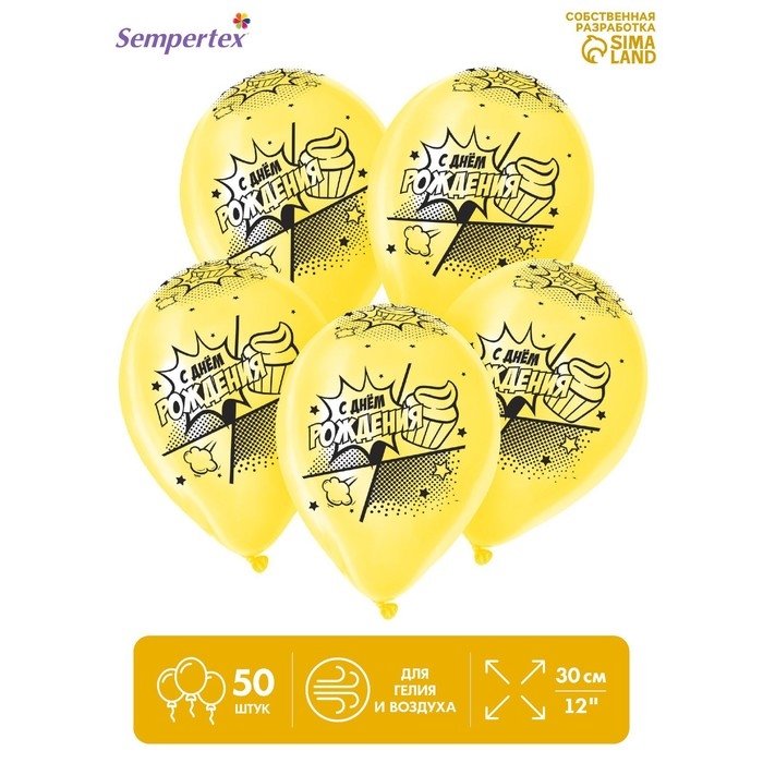 Воздушный шар латексный 12" «С Днём Рождения. Комикс 2», пастель, цвет жёлтый, 50 шт.