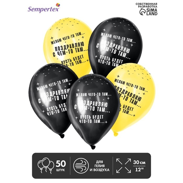 Воздушный шар латексный 12" «Что-то там...», пастель, цвет черный, жёлтый, 50 шт.