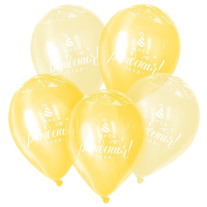 Воздушный шар латексный 12" «С Днём Рождения», прозрачный, цвет оранж., жёлт., 50 шт.