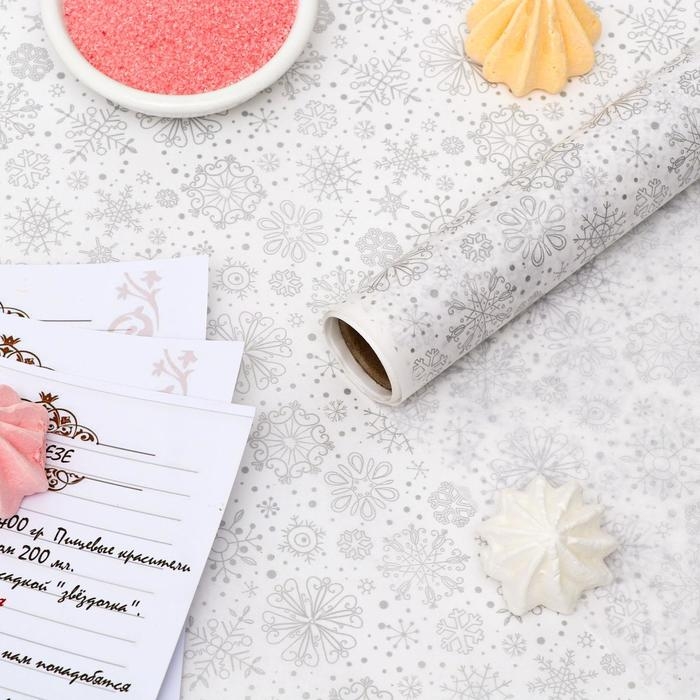 Бумага силиконизированная «Снежинки», серебряные, для выпечки, 0,38 х 5 м